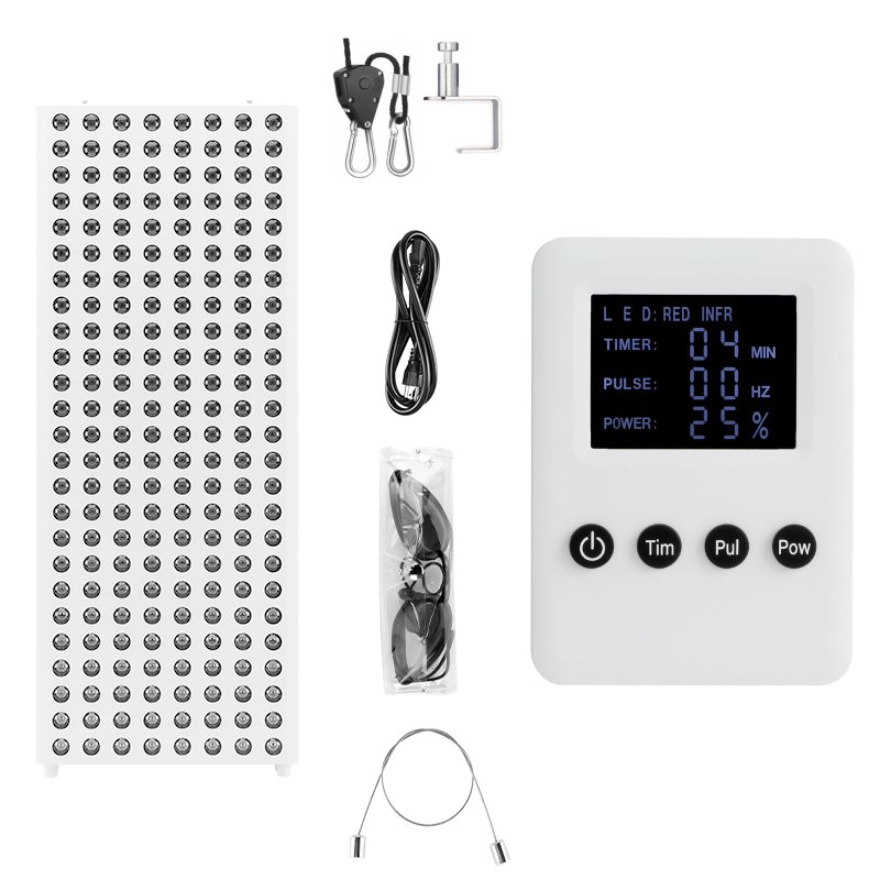 – Remote Control to adjust settings: Red and Near Infrared individual options, or both, Pulse, Dimming/Brightness and Timer