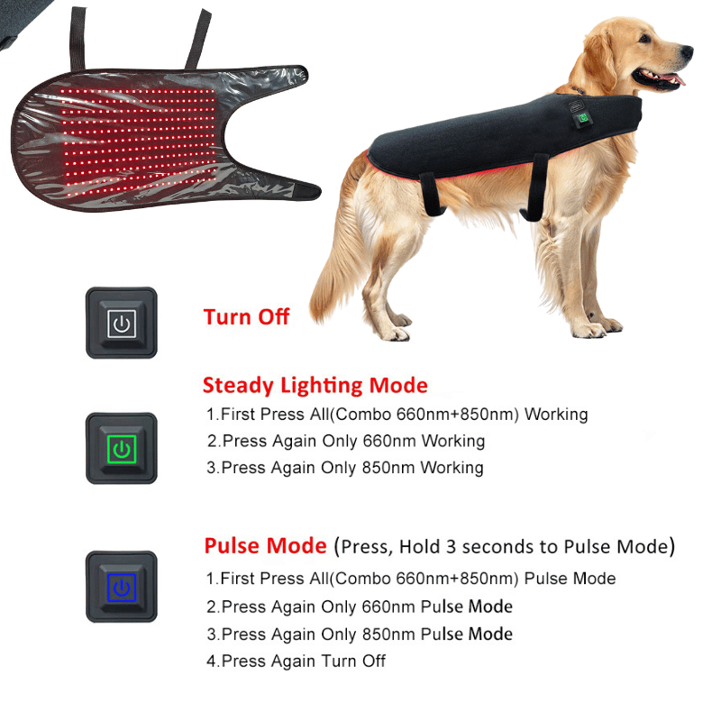 Using 660nm red light and 850nm near-infrared light, this wearable light therapy animal coat couldn’t be easier to use, battery powered, rechargeable via Type-C cable supplied. — FDA Cleared, safe and comfortably red light therapy treatment at-home.